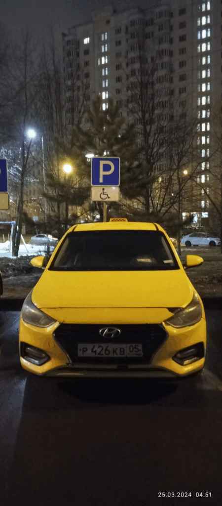 25.03.2024. 04 ч. 51 м. г. Москва, Загорьевская ул., д. 25. Водитель такси припарковал свой автомобиль на парковочном месте инвалида, грубо нарушив ПДД.