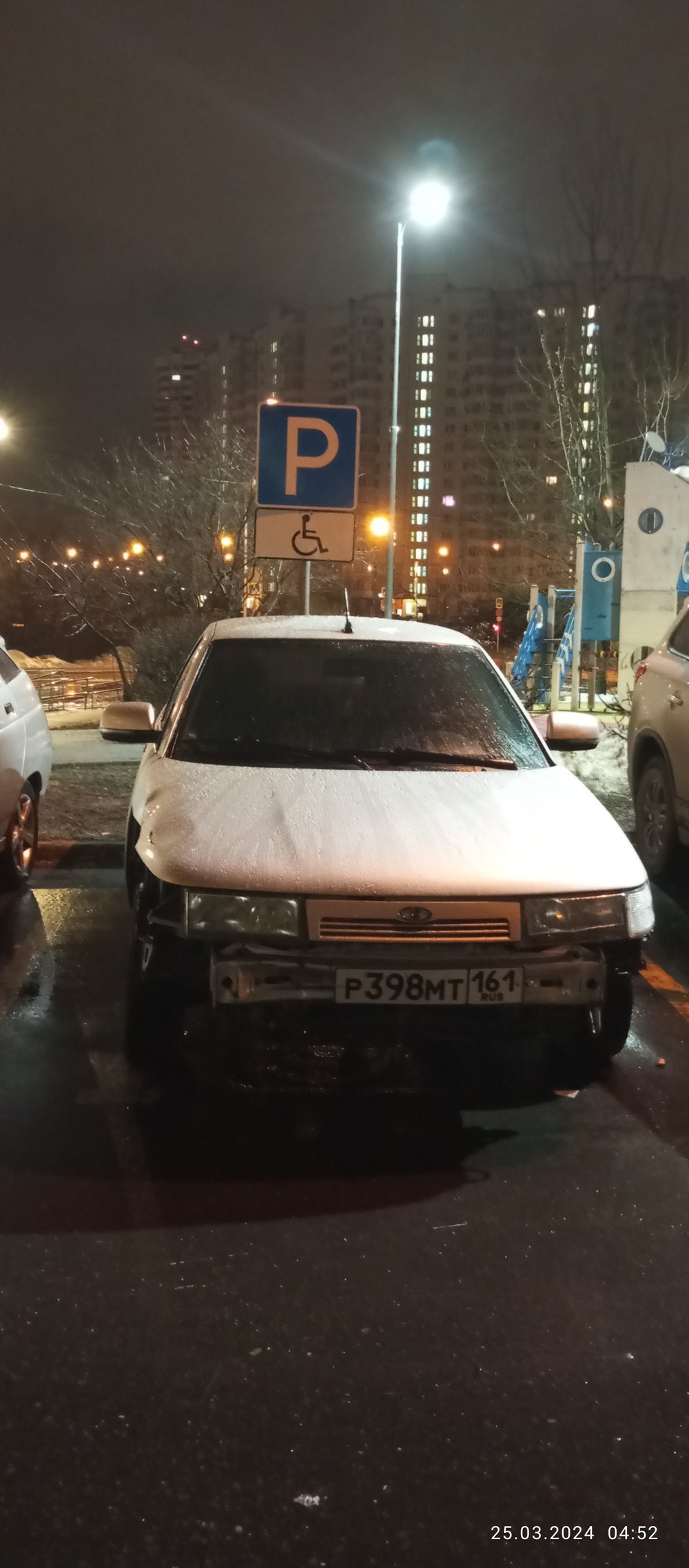 25.03.2024. 04ч. 53 м. г. Москва, Загорьевская ул., д. 25, дворовая территория. Водитель уже второй день занимает парковочное место инвалида