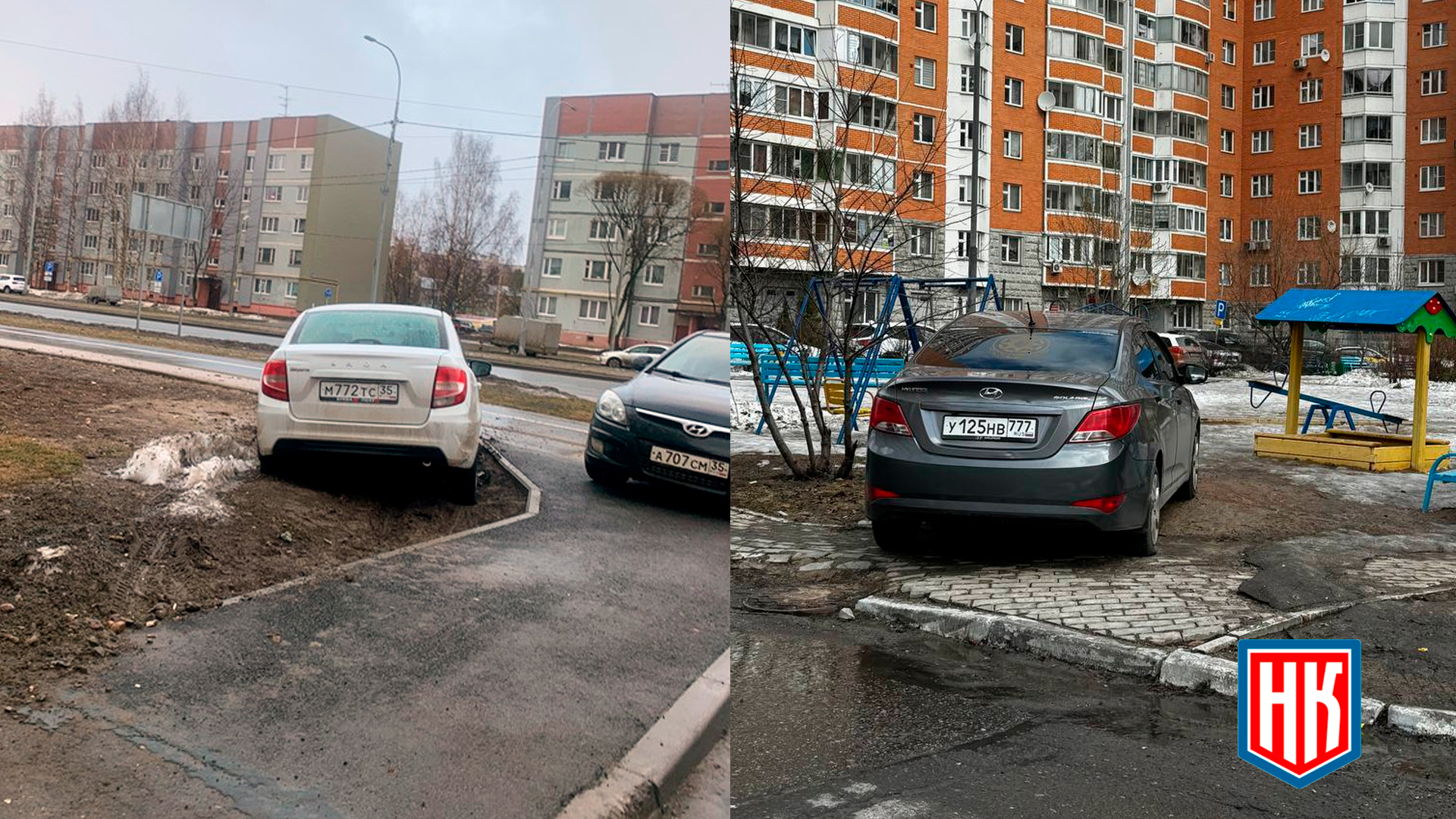 Балашиха, мкр. Янтарный, б-р Янтарный, д. 5. Парковка на газоне