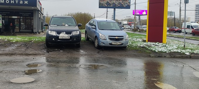 Санкт Петербург, ул. Антонова-Овсеенко, д. 20. 25 апреля 2024, 07:10 утра. Парковка на газоне.