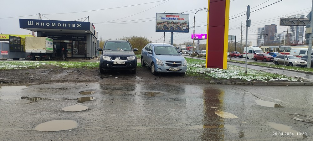 25.04.2024г. 10:50. г. Екатеринбург, пр. Космонавтов, 17д. Массовая парковка автомобилей на газоне.