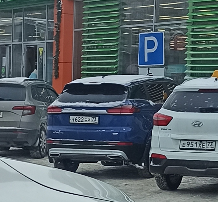 Ульяновск, ул. Привокзальная, 9, маг. Гулливер. Синий Атлас рег. номер Н622ЕР73 припарковался на месте для инвалидов