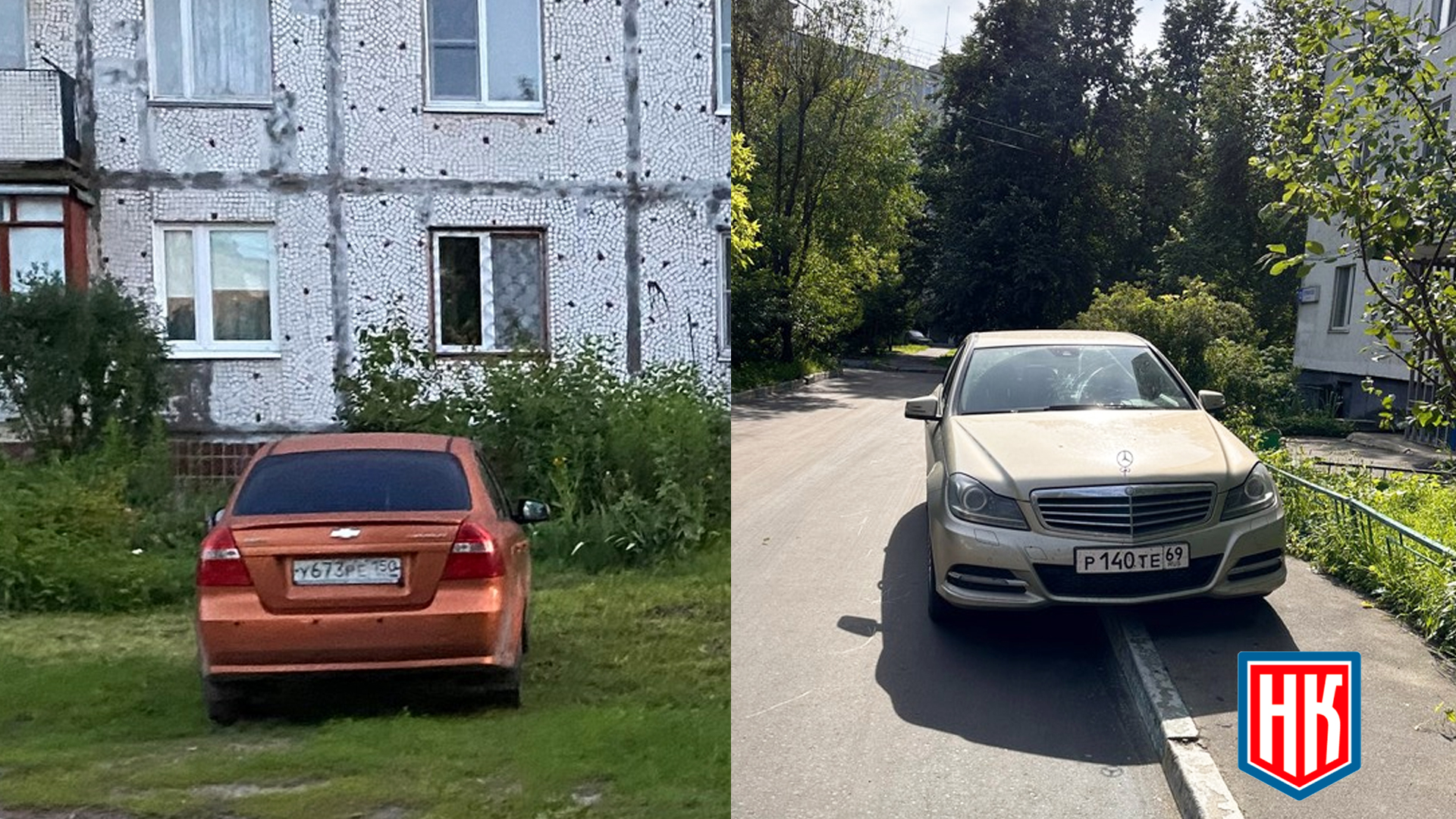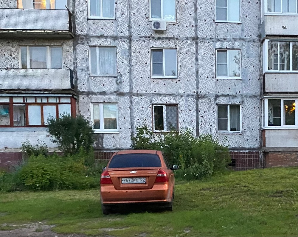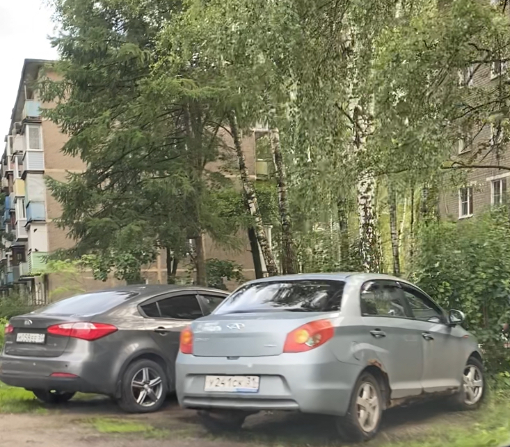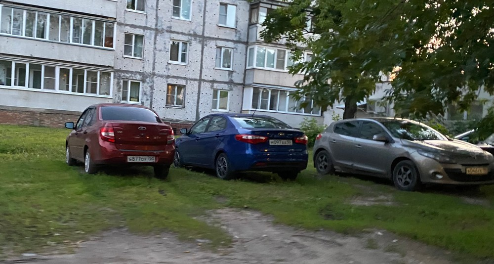 26.06.2024. Павловский посад, Фрунзе 41. Автомобили припаркованы на газоне.