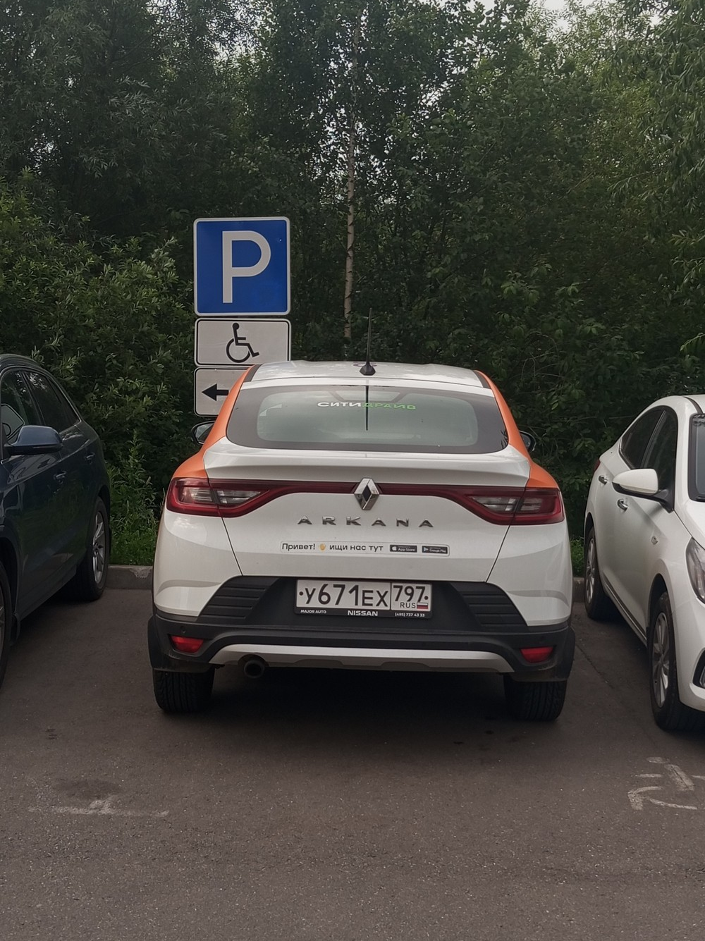 26.06.2024 в 05 ч. 47 м., г. Москва, ул. Загорьевская, д. 25, стр. 2, Рено Аркана, кашеринг, гос. номер У671ЕХ797, водитель припарковал свой автомобиль на парковочном месте для инвалидов