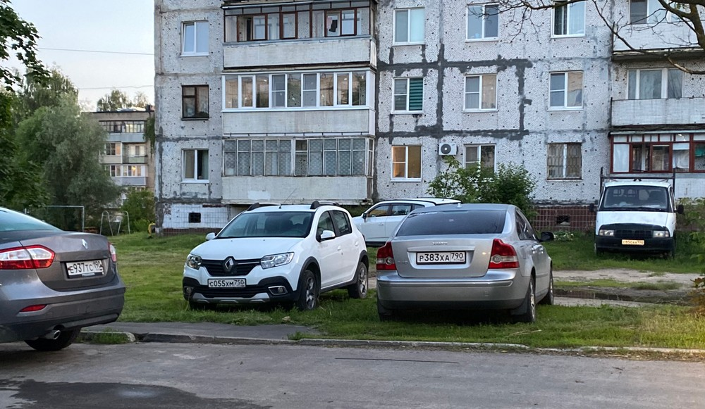 26.06.2024. Павловский Посад, Южная, 20. Автомобили припаркованы на газоне.