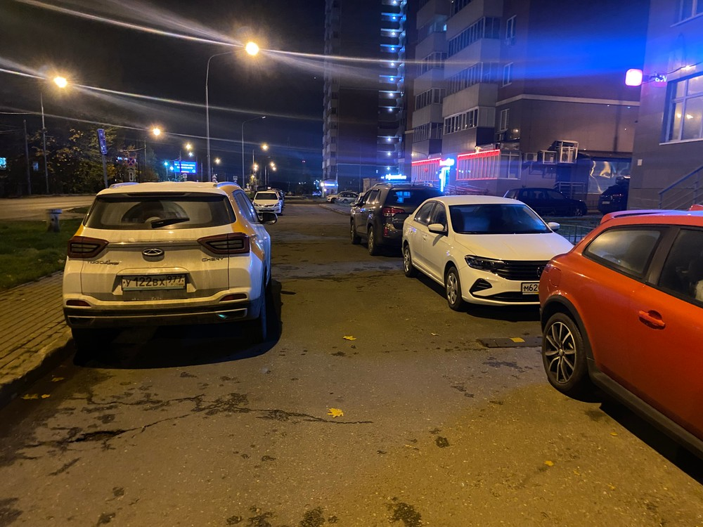 26 октября 2024. г. Екатеринбург, ул. Рощинская 21 к 2. Припарковался на тротуаре.