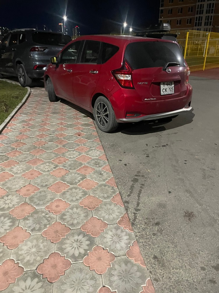 Парковка на пешеходной зоне и тротуаре. Г. Владивосток, ул. 2-я Строительная 25.
