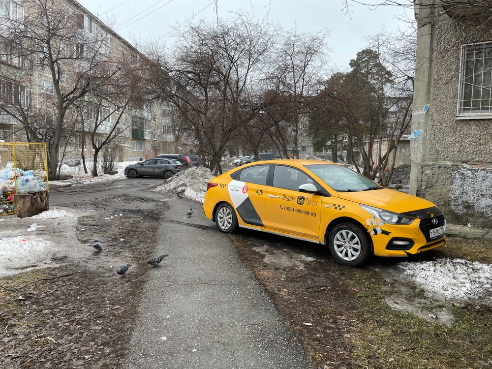 Екатеринбург, Симферопольская 31а, так паркуется с со смены водитель такси, постоянно , так как здесь живет. На тротуарной дорожке, проезжая через газон и перенося грязь. Почему после смены, машина ставится у дома, а не в гараже, или предусмотрено для этого места?
