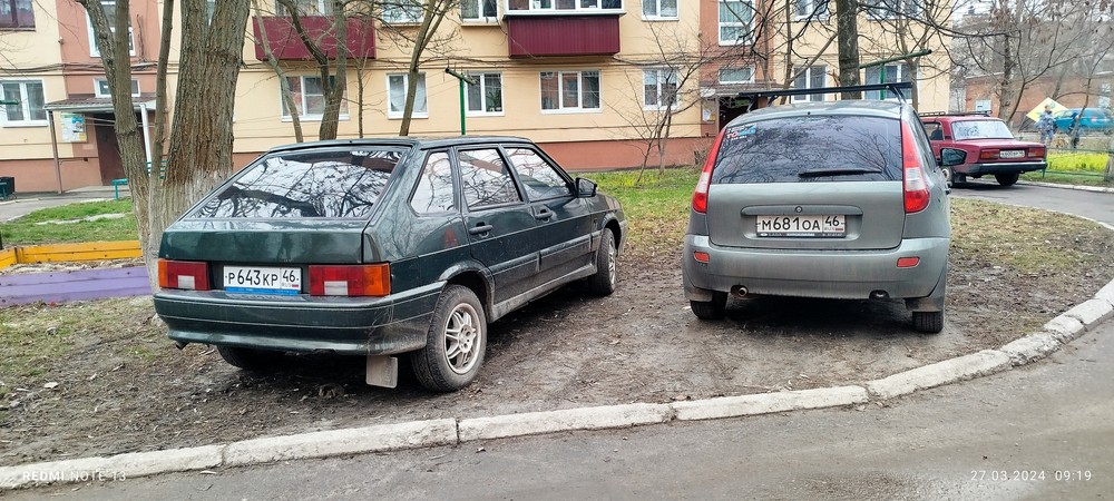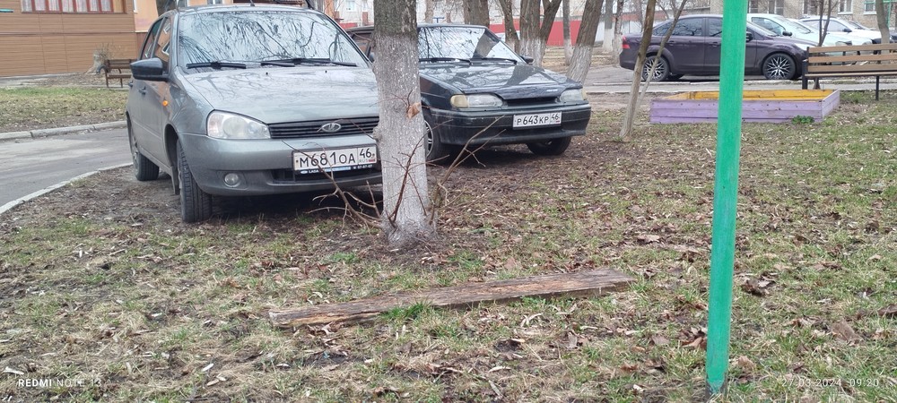 Курск, ул. Менделеева 35. Парковка на газоне двух автомобилей.