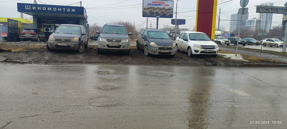27.03.2024г. 10:59 г. Екатеринбург, пр. Космонавтов, 17д. Массовая парковка автомобилей на газоне.