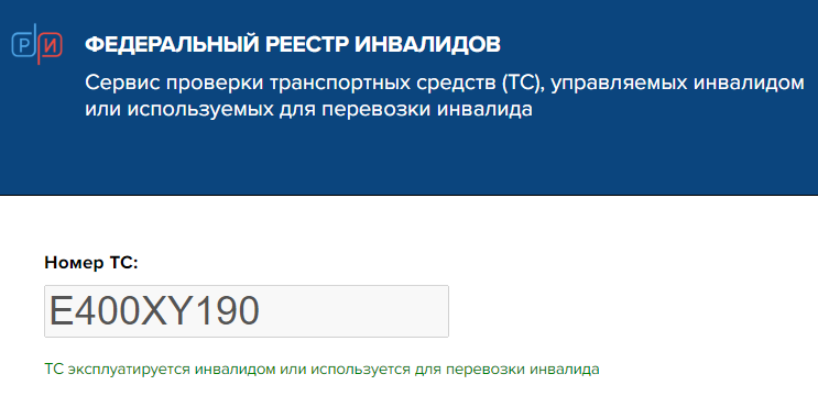 После проверки выявлено, что данное ТС эксплуатируется инвалидом или используется для перевозки инвалида.