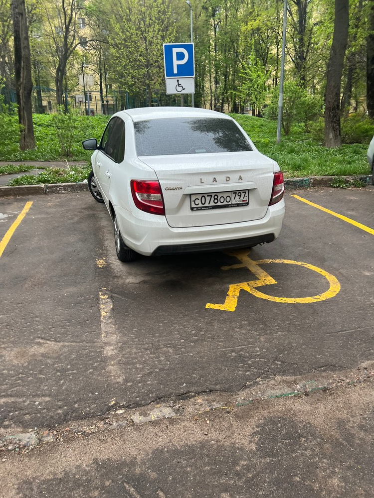 27.04.2024, 09:09 г. Москва, ул. Крупской, д. 14, стоянка за домом. Автомобиль на месте инвалида, без знака инвалид, информация в реестре автомобилей инвалидов отсутствует.