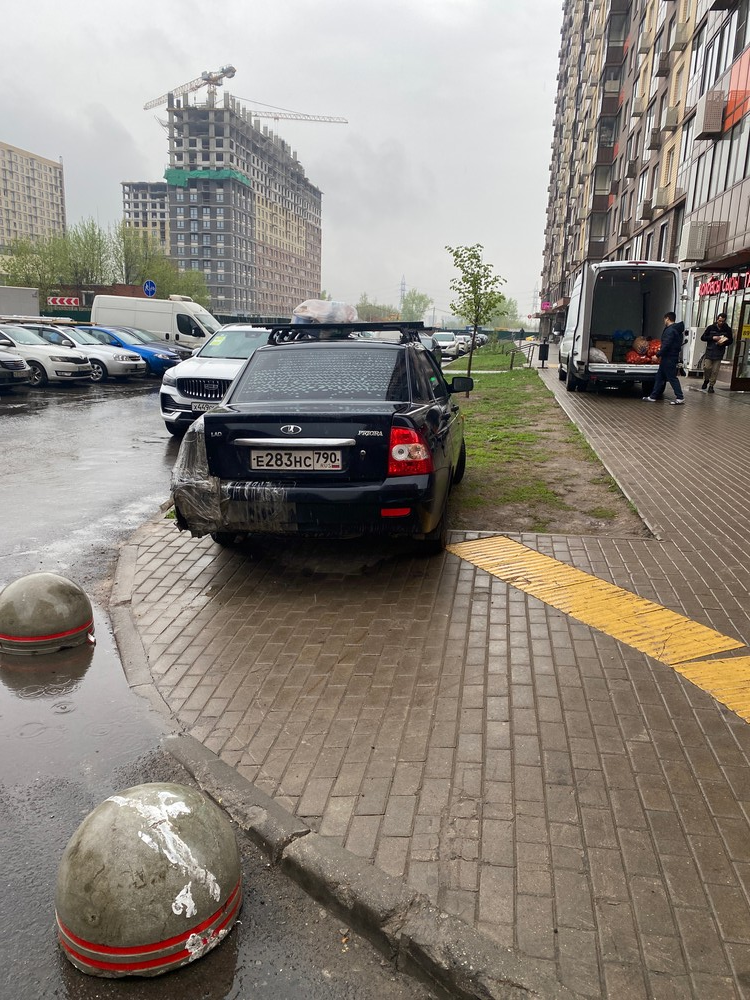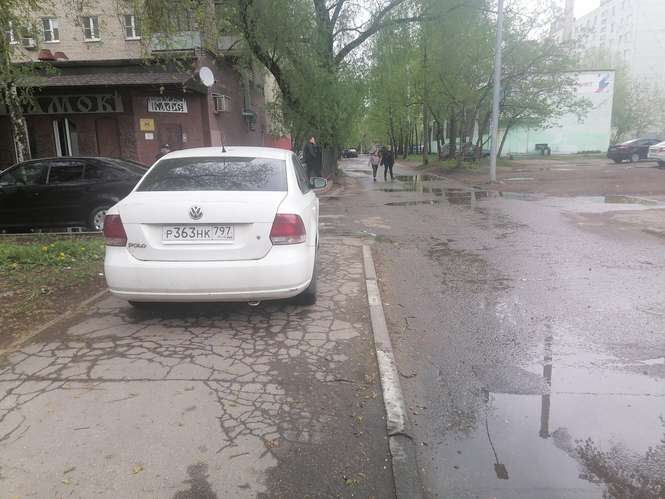 27 апреля, 9:39, люберецкий ГО, ул. Академика Северина 5 к.1, парковка на пешеходной дорожке с заездом на газон.