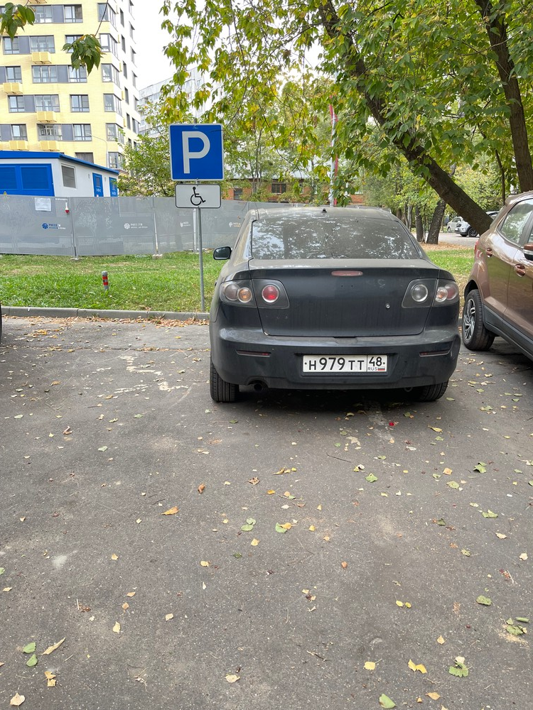 Машина стоит на инвалидном месте без знака «инвалид» по адресу — Москва, поселок Загорье дом 10. Просьба принять меры.