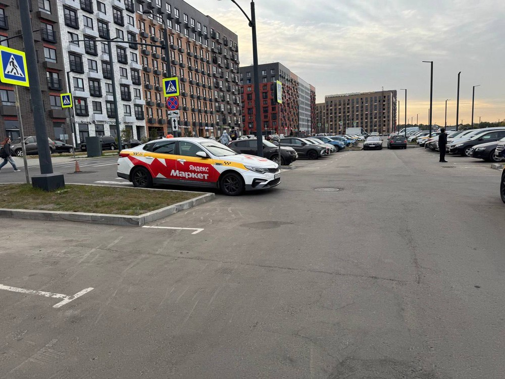27.09.24. Домодедово, мкрн Южный, улица Виноградная 15б,парковка на пешеходном тротуаре и газоне.