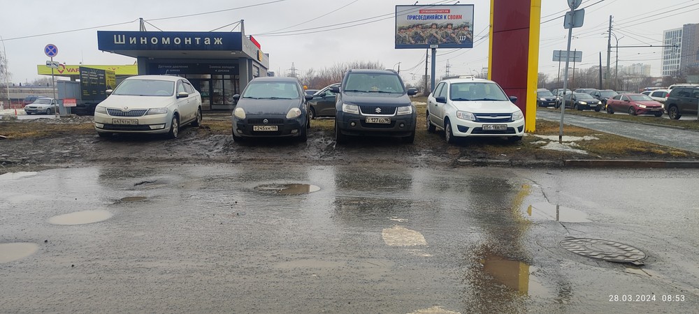 28.03.2024г. 08:53 г. Екатеринбург, пр. Космонавтов, 17д. Массовая парковка автомобилей на газоне.