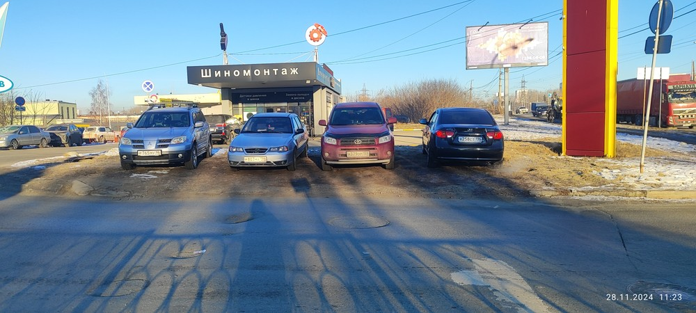 28.11.2024 г., 11:23, г. Екатеринбург, пр. Космонавтов, 17д. Массовая парковка автомобилей на газоне. Автомобили: Mitsubishi Outlander г.н. Р 765 МУ 196, Daewoo Nexia г.н. Р803МХ196, Toyota RAV4 г.н. Н379ОР159, Hyundai Elantra г.н. А258СТ196.