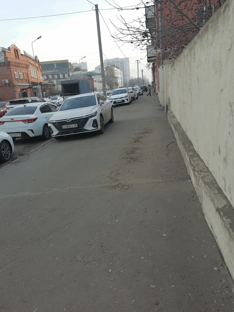 28.11.2024, 12:52. г. Казань. По улице Нариманова, 50, снова на тротуаре стоит целый таксопарк. Все эти автомобили принадлежат посетителям кафе через дорогу. Сколько ещё это можно терпеть? Почему органы власти не замечают проблемы на улицах города?