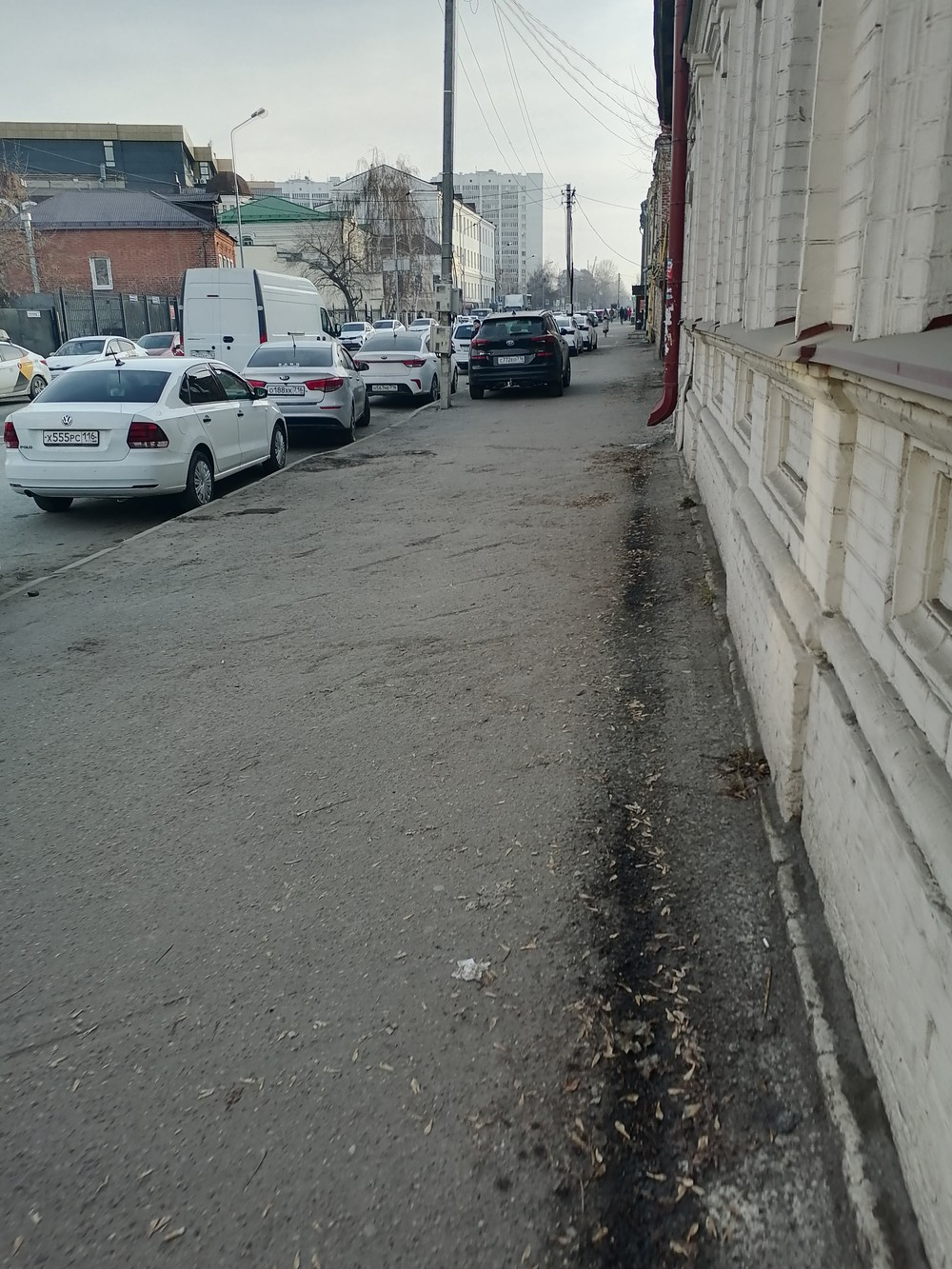 28.11.2024, 12:52. г. Казань. По улице Нариманова, 50, снова на тротуаре стоит целый таксопарк. Все эти автомобили принадлежат посетителям кафе через дорогу. Сколько ещё это можно терпеть? Почему органы власти не замечают проблемы на улицах города?