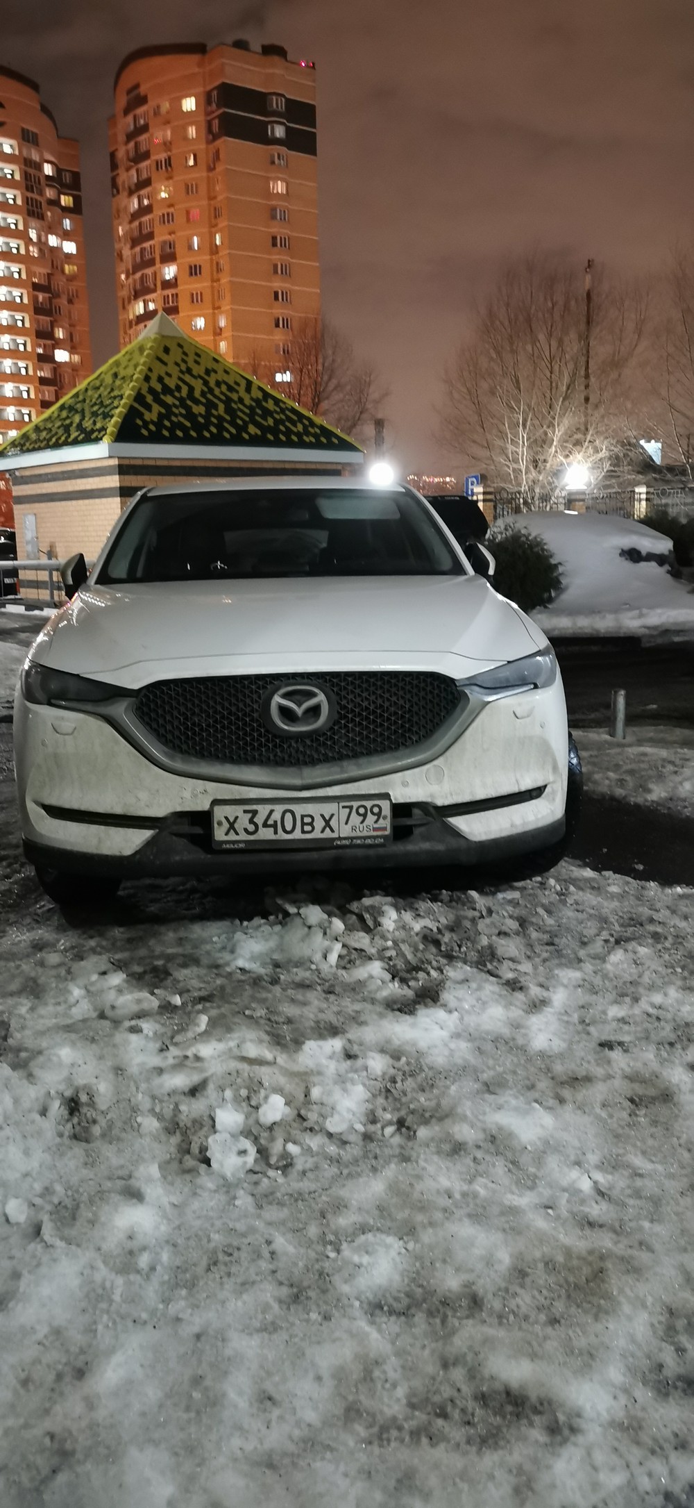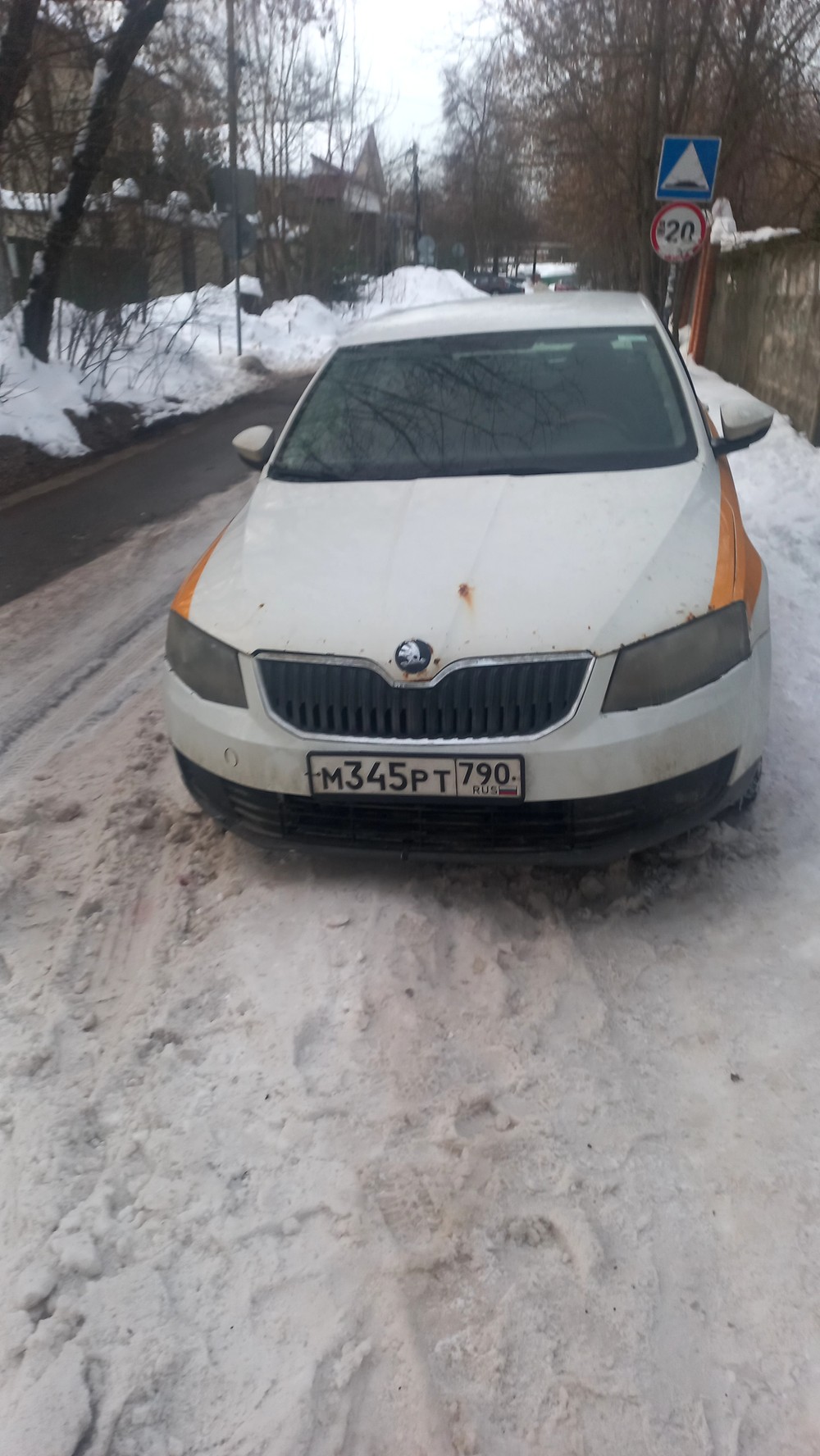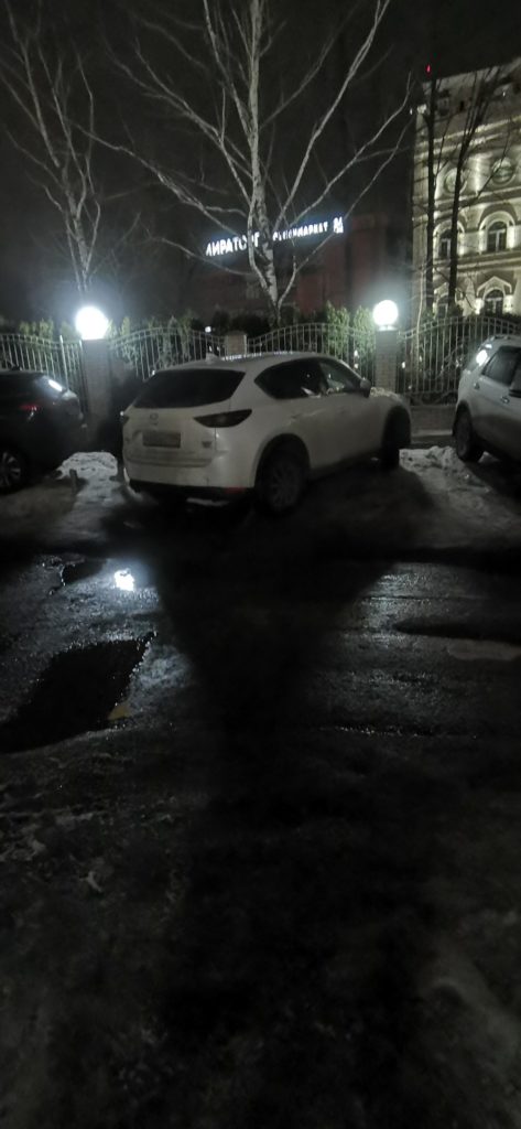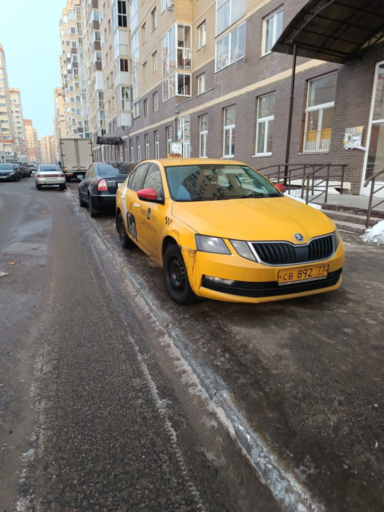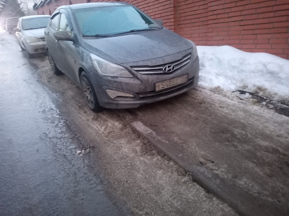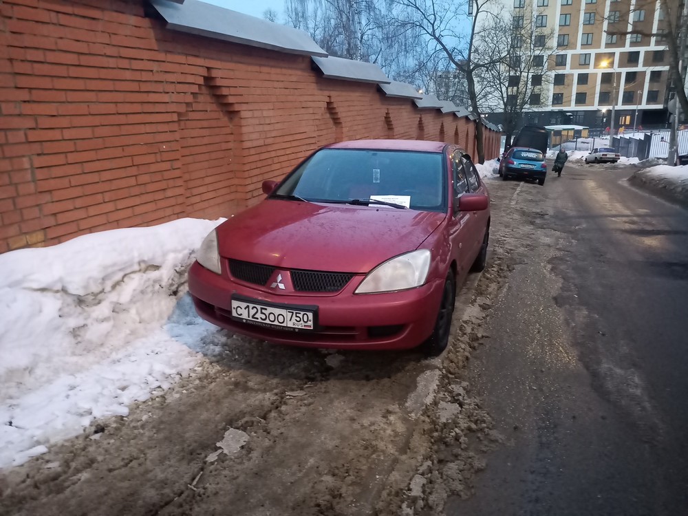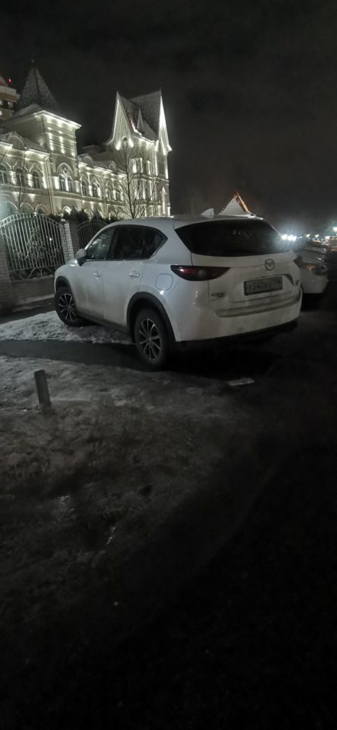 г. Москва, ул. Селигерская 32а. Постоянная парковка на тротуаре. Эта машина стоит сутки, по вечерам и по утрам весь бордюр усажен машинами. Сейчас скользко, обойти все это дело очень тяжело.