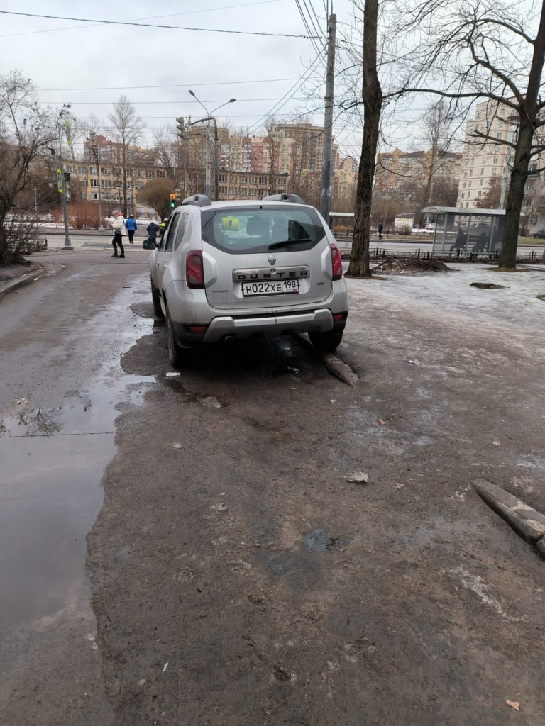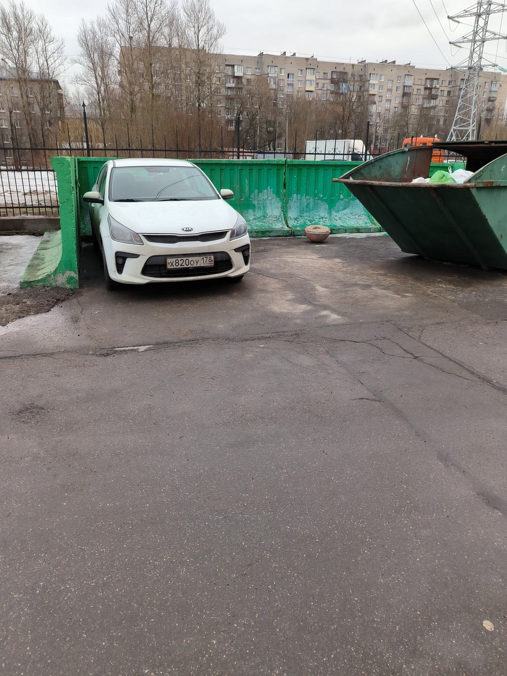 29.02.2024. Санкт-Петербург, Московское шоссе 39 к2. Парковка в зоне вывоза отходов.