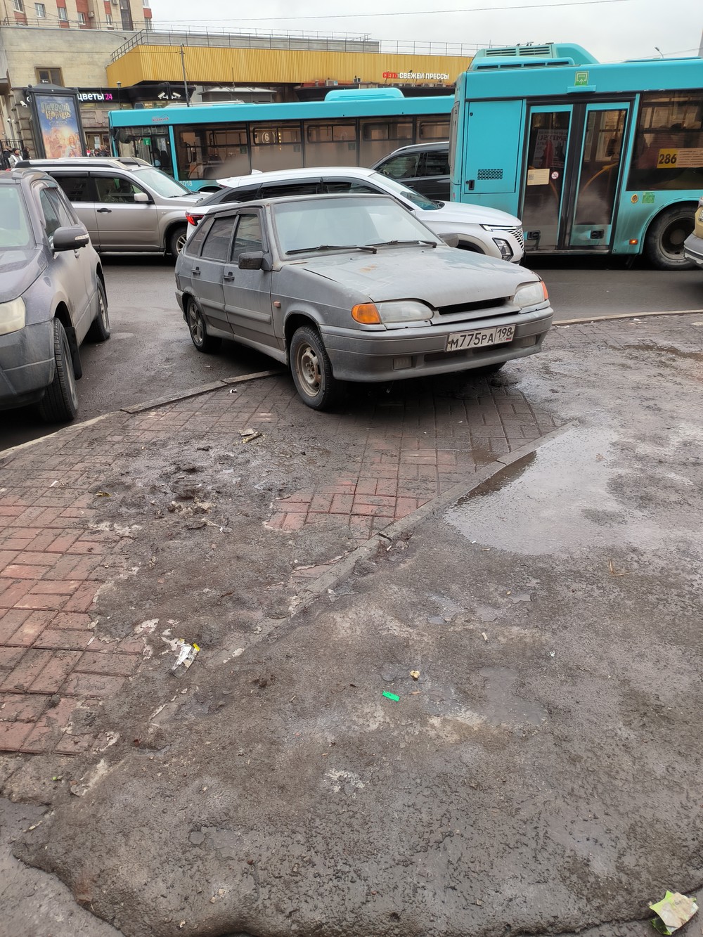 29.02.2024. Санкт-Петербург, Звëздная 8. Парковка на тротуаре.