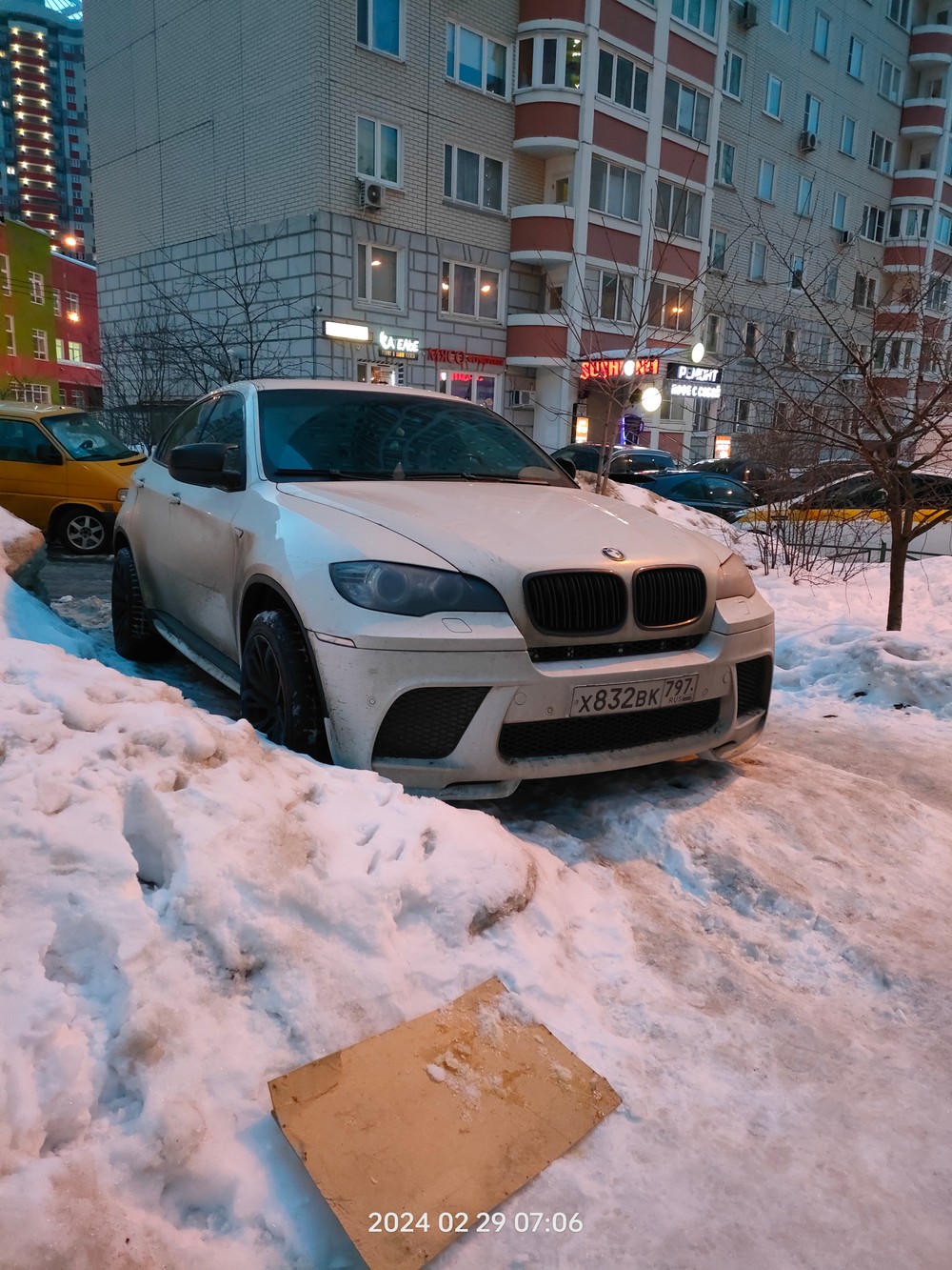 29.02.2024 в 07:06. Московская область, Красногорский район, Путилково, Спасо-Тушинский бульвар дом 7 и 70тия Победы дом 2 (внешняя сторона, тротуар) Парковка на газоне, тротуаре. Пешеходам негде ходить. Х832ВК797 (55.873152, 37.394993)