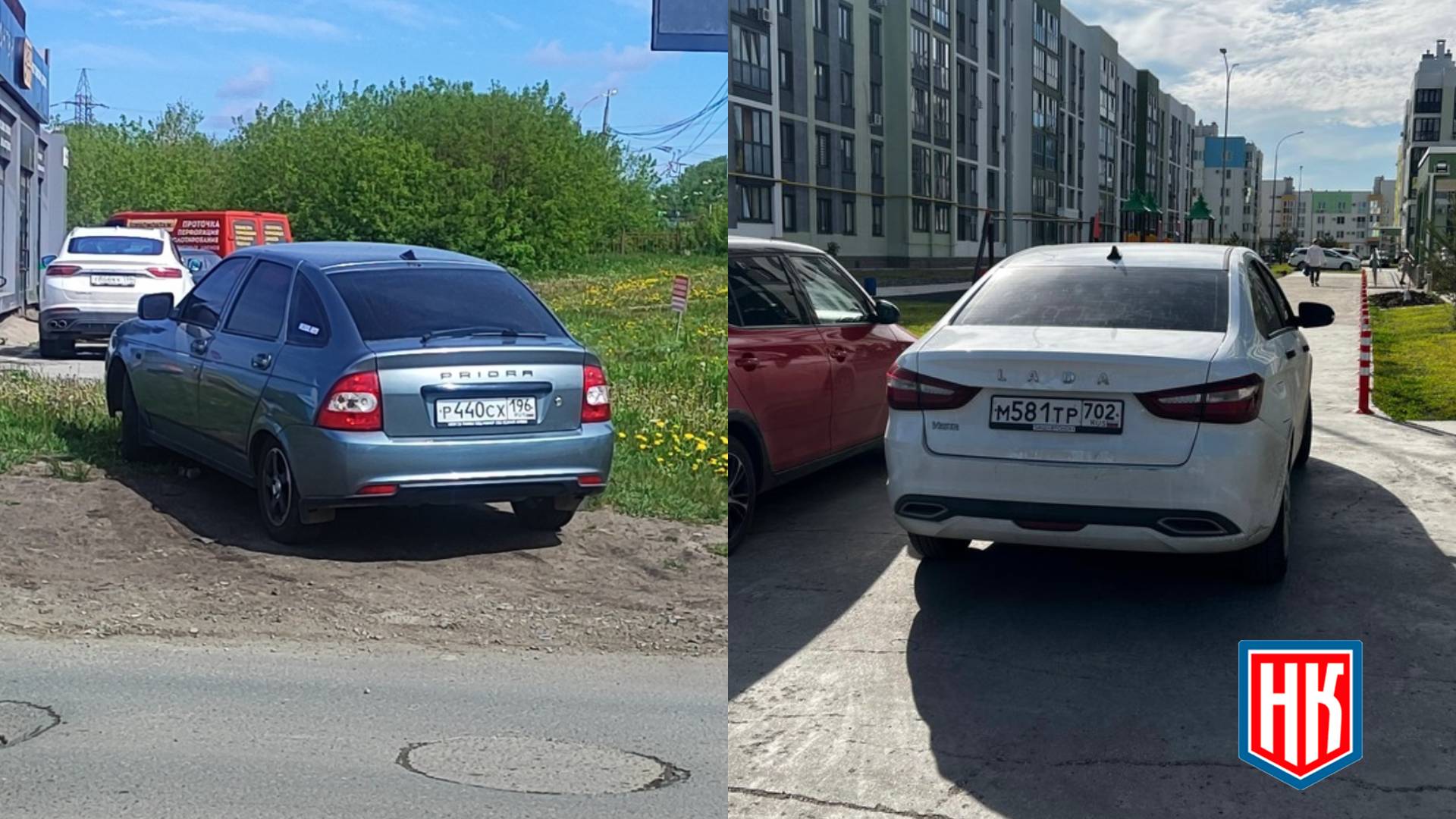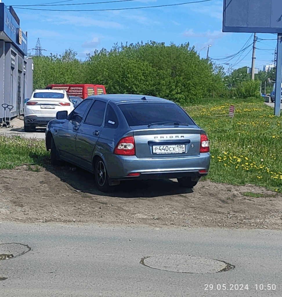 29.05.2024г. 10:50 г. Екатеринбург, пр. Космонавтов, 17д. Парковка автомобиля на газоне. Lada Priora г.н. р 440 сх 196.