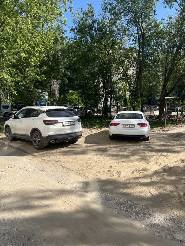 Строители паркуются на зеленой зоне. Казань, двор по ул. Хади Такташа, д. 99. 29.05.2024 время 8-02. и так каждый день.