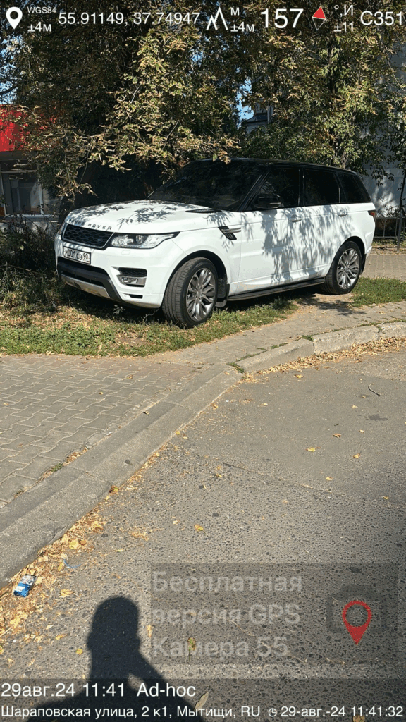 29.08.2024. г. Мытищи, ул. Шараповская, газон перед магазином Верный. Автомобиль м001св90к.