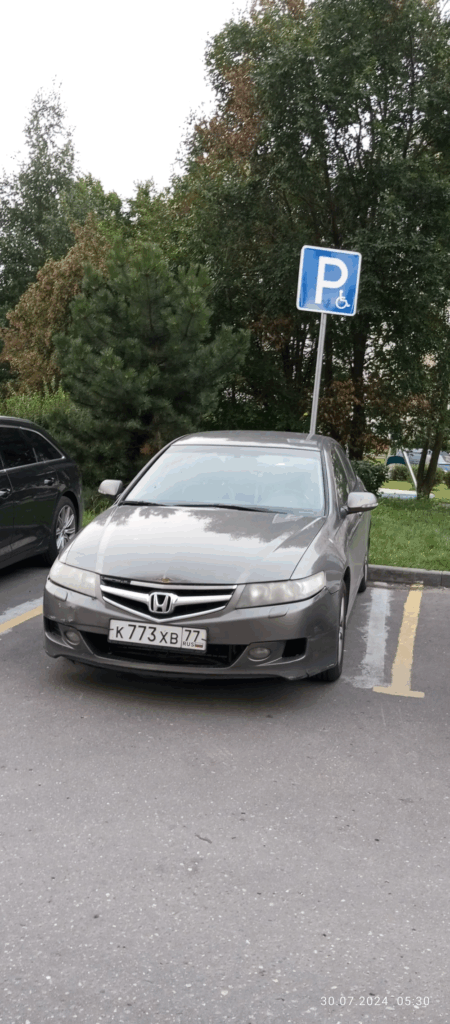 30.07.2024 г., 05 ч. 30 мин., г. Москва, Загорьевская ул. д. 25, автомобиль Хонда серого цвета, номерной знак — К773ХВ77, парковка на парковочном месте инвалидов.