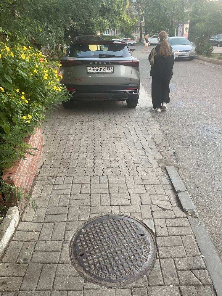31.07.2024 г. Сочи, Адлерский р-н., ул. Молокова 32 (торец дома) Парковка на тротуаре.