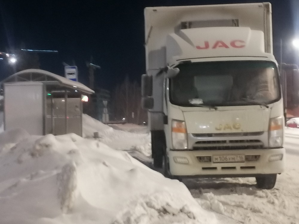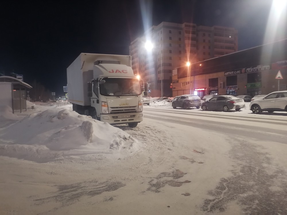 10.02.2024 г. Набережные Челны, ул Раскольникова, возле дома 48/1, стоит припаркованный грузовой автомобиль на остановке общественного транспорта уже вторые сутки, создает аварийную ситуацию, загораживает вид выезда с прилегающей территории. Прошу принять меры