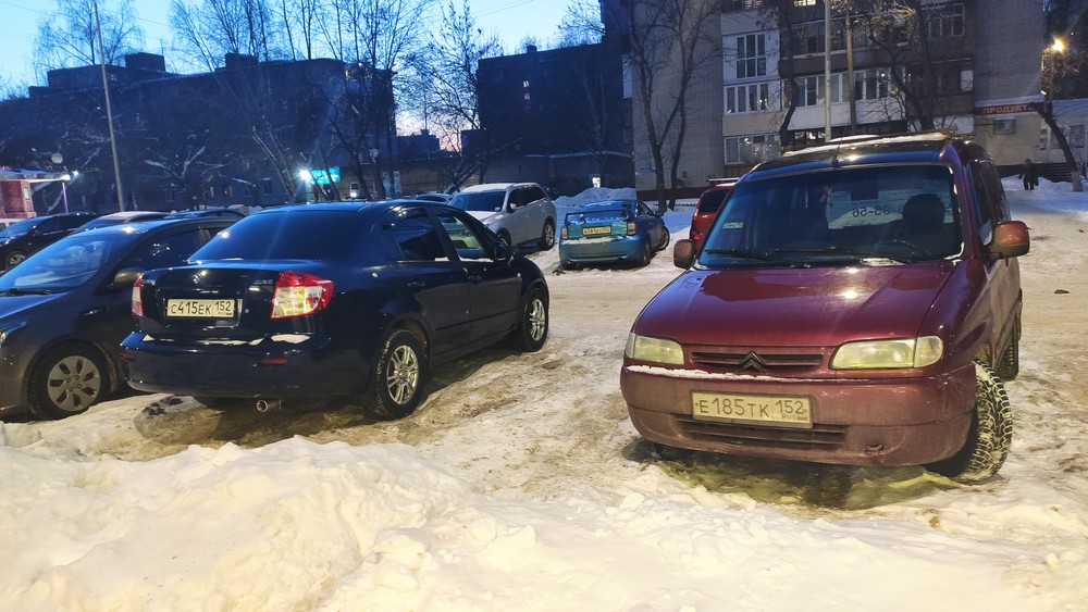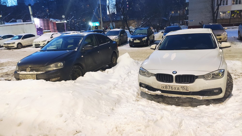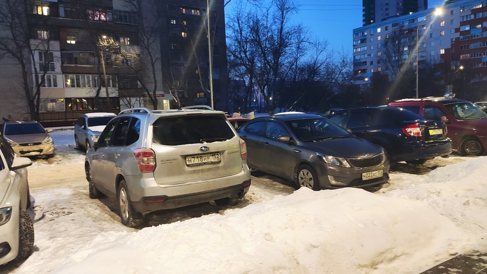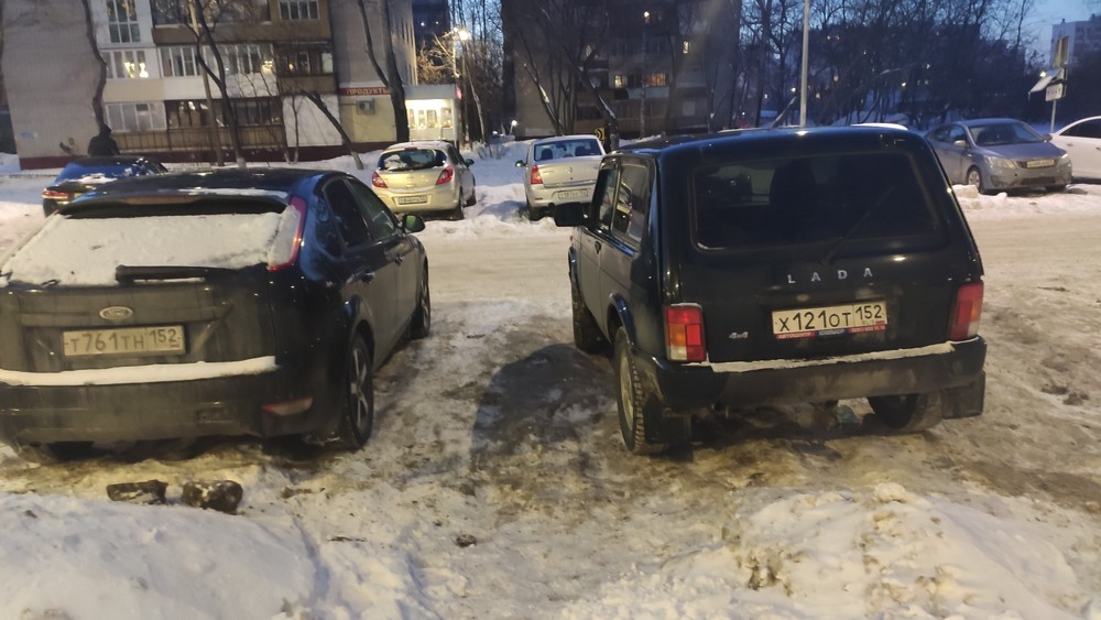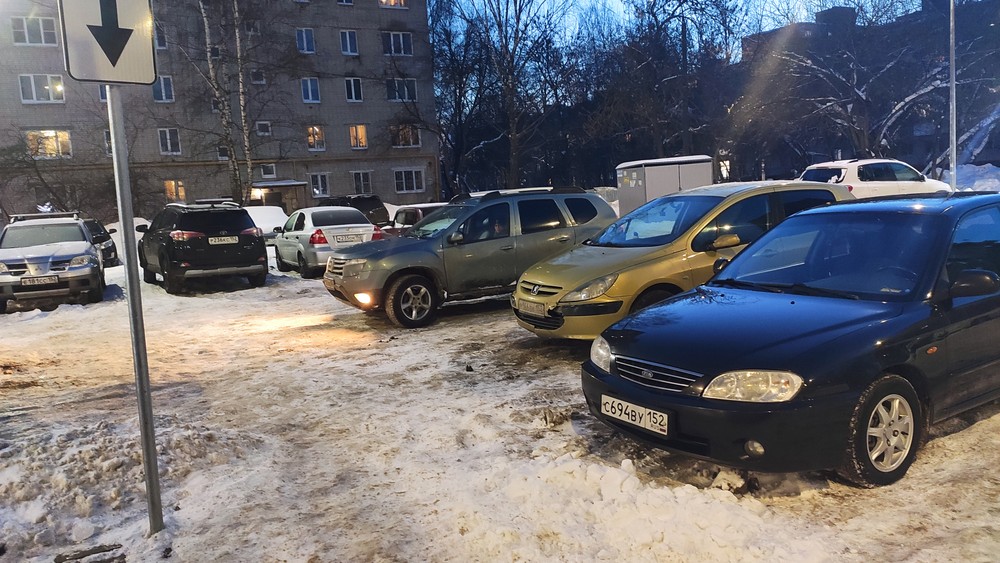 10.02.24 г. Нижний Новгород, ул. Маковского, дом 25. Массовая парковка. Под запрещающим знаком. Создают помеху для движения. Парковка на инвалидном месте.