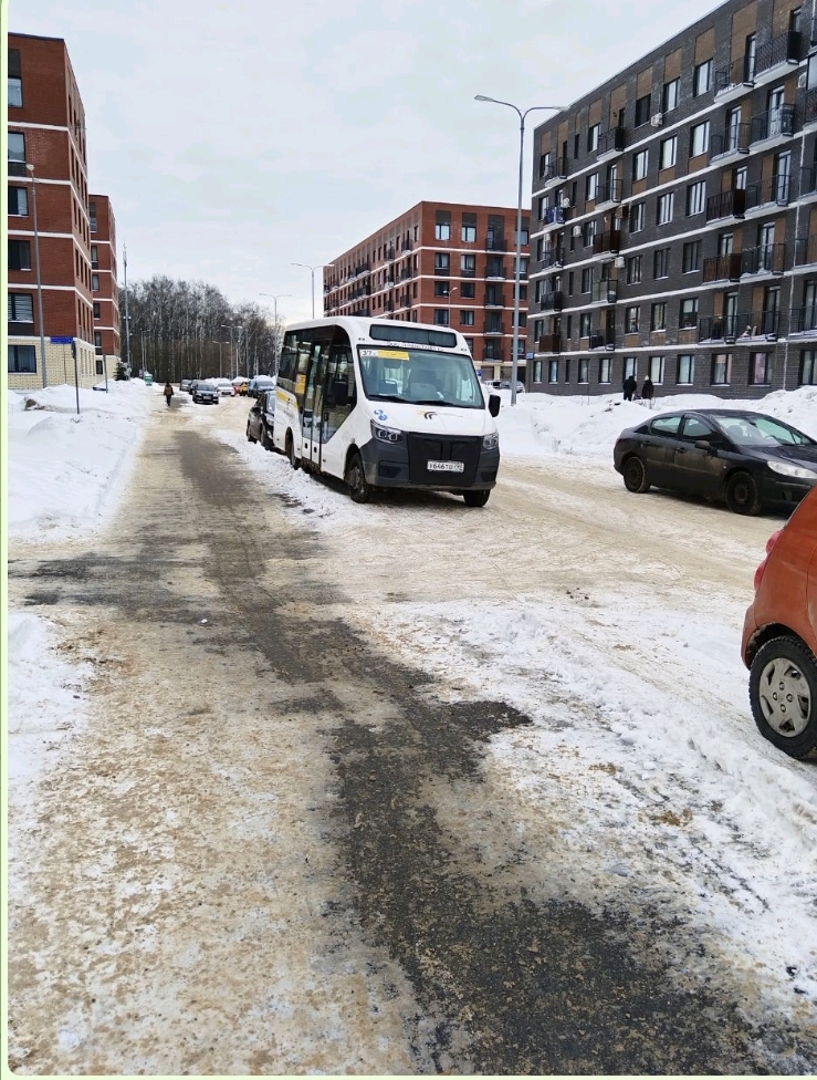 Парковка маршрутки в жилом дворе. Нарушение закона. Автобусы и маршрутки не могут парковаться в зоне жилых домов. Балашиха, мкр. Саввино, Народного ополчения д. 9