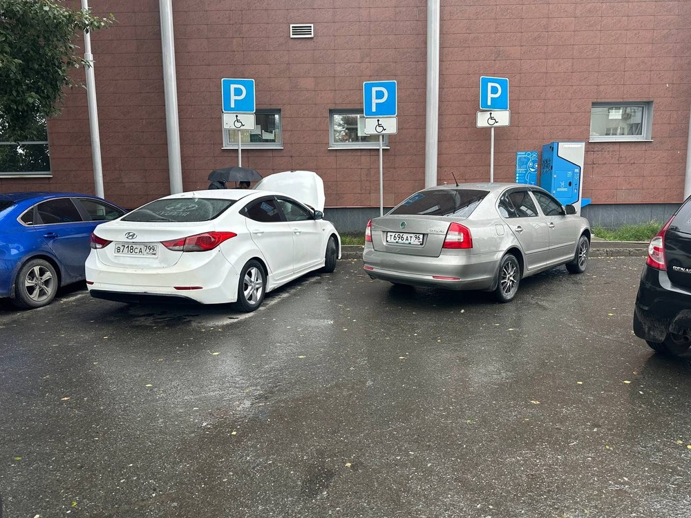 Парковка в зоне действия знака 6.4 с табличкой 8.17. Проверить на законных ли основаниях припаркованы автомобили. Адрес: г. Екатеринбург, улица Учителей, 2Б ( возле магазина «Кировский»).