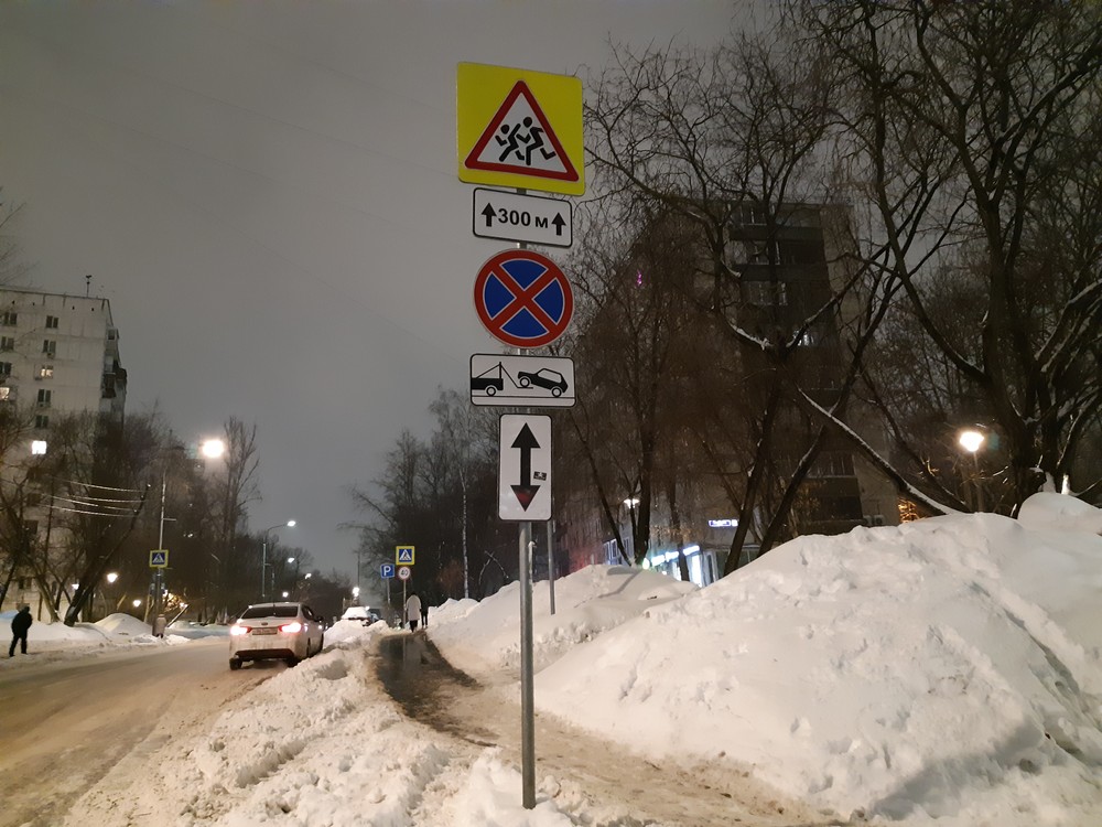 Москва, улица Шоссейная, дом 4. Автомобиль стоит в зоне действия знака 3.27 и рядом с пешеходным переходом.