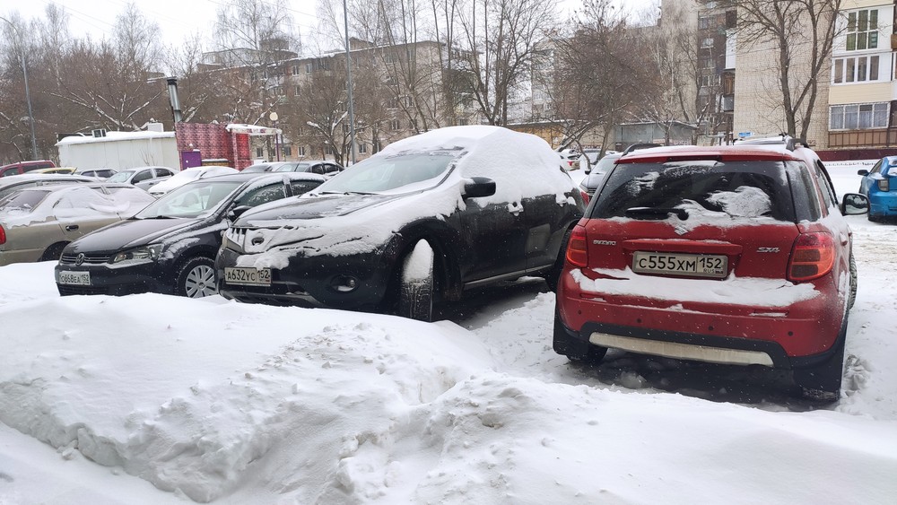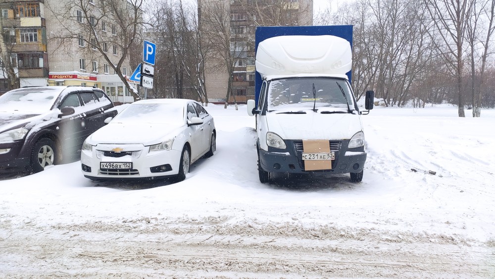 Нижний Новгород, ул. Маковского, дом 25. Массовое нарушение правил парковки под запрещающим знаком. И на парковке для инвалидов.
