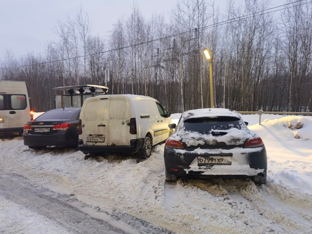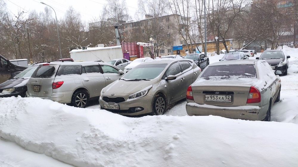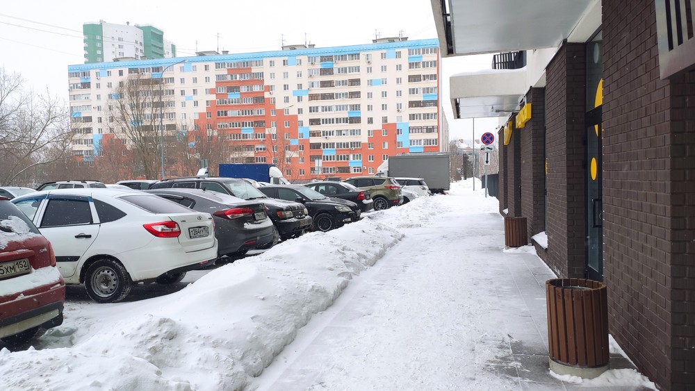 18.02.2024 г. Балашиха, мкр. Кучино ул. Виноградная д. 1 Машины стоят на пешеходном проходе и перекрывают полностью пешеходный проход.