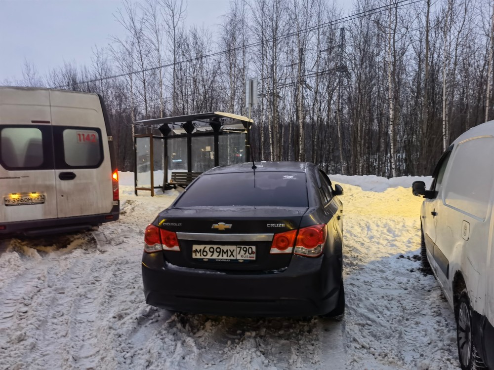 17.02.24г., г. Видное, п. Битца, Южный бульвар д. 6. Парковка на остановке общественного транспорта 1142.