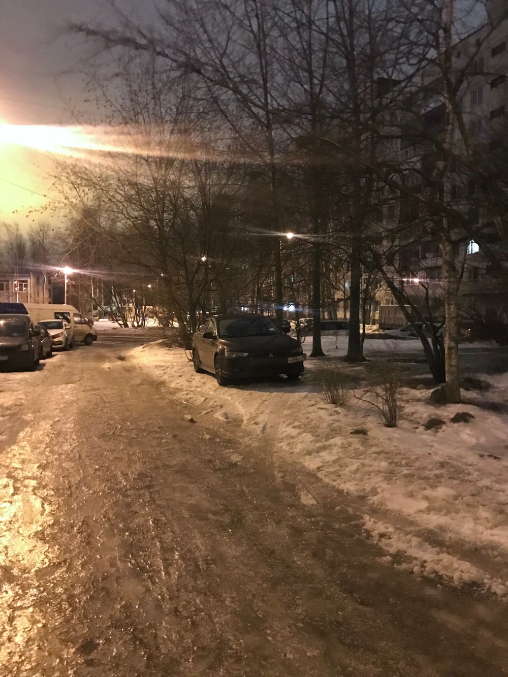 В ночь на 18 февраля 2024, Санкт-Петербург, Солидарности 10 к3 (дом одноподъездный). На фото обратная сторона дома. Ранее осенью 2023г., по периметру дома было убрано всё ограждение (забор), что в последствии привело к соблазну некоторых водителей там парковаться, скрин прилагаю. Под снегом довольно высокий переход с бордюрным камнем, а авто стоит в том месте, где были высажены молодые кустики.