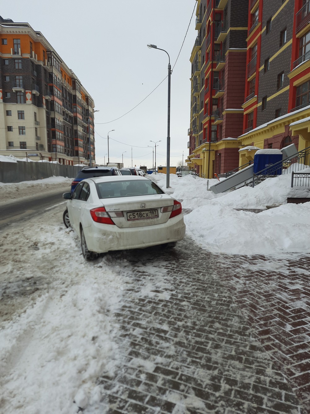 18.02.2024 г. Балашиха, мкр. Кучино ул. Виноградная д. 1 Машины стоят на пешеходном проходе и перекрывают полностью пешеходный проход.