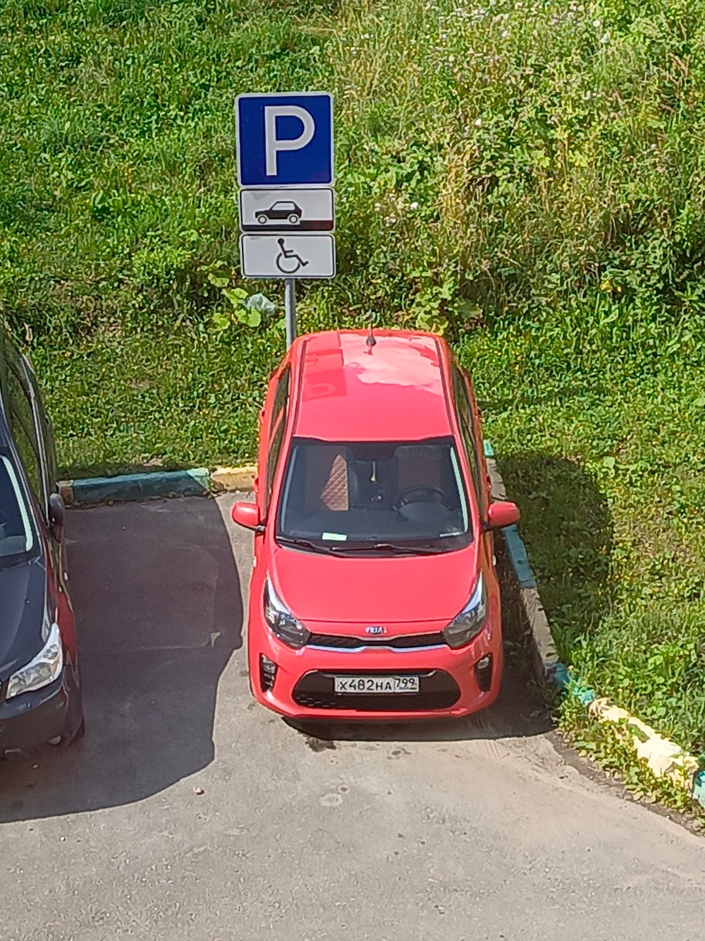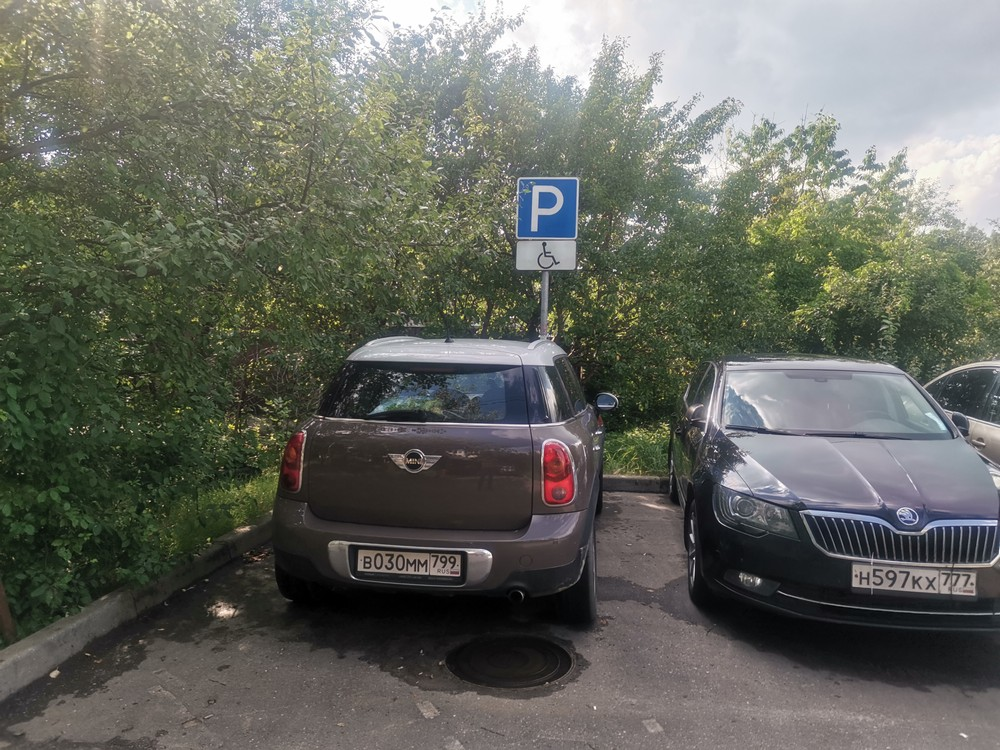 20.07.2024. Московская область, Красногорский район, рабочий посёлок Нахабино, улица Покровская дом 8, парковка на инвалидном месте.