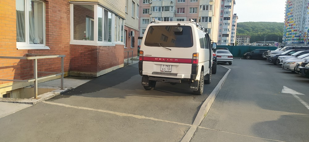 Р420ТР27 RUS. Т793ХО125 RUS. Приморский край. г. Владивосток. ул. Зелёный бульвар 26. Парковка на тротуаре. 25.08.2024. 8:32.