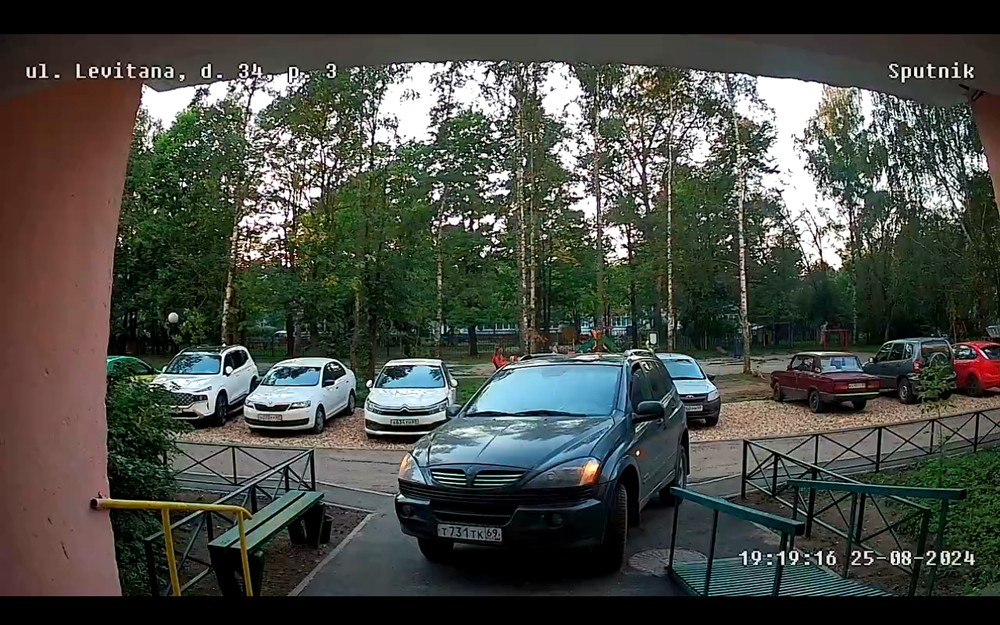 25.08.2024 припаркована машина, которая мешает выезду маломобильных групп жителей. Тверь, Левитана 34. Припаркована на тротуаре.