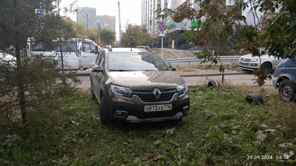 г. Казань, ул. 4-я Калининградская д. 14, 29.09.2024 а\м о072хе716 припаркован на зелёной зоне .