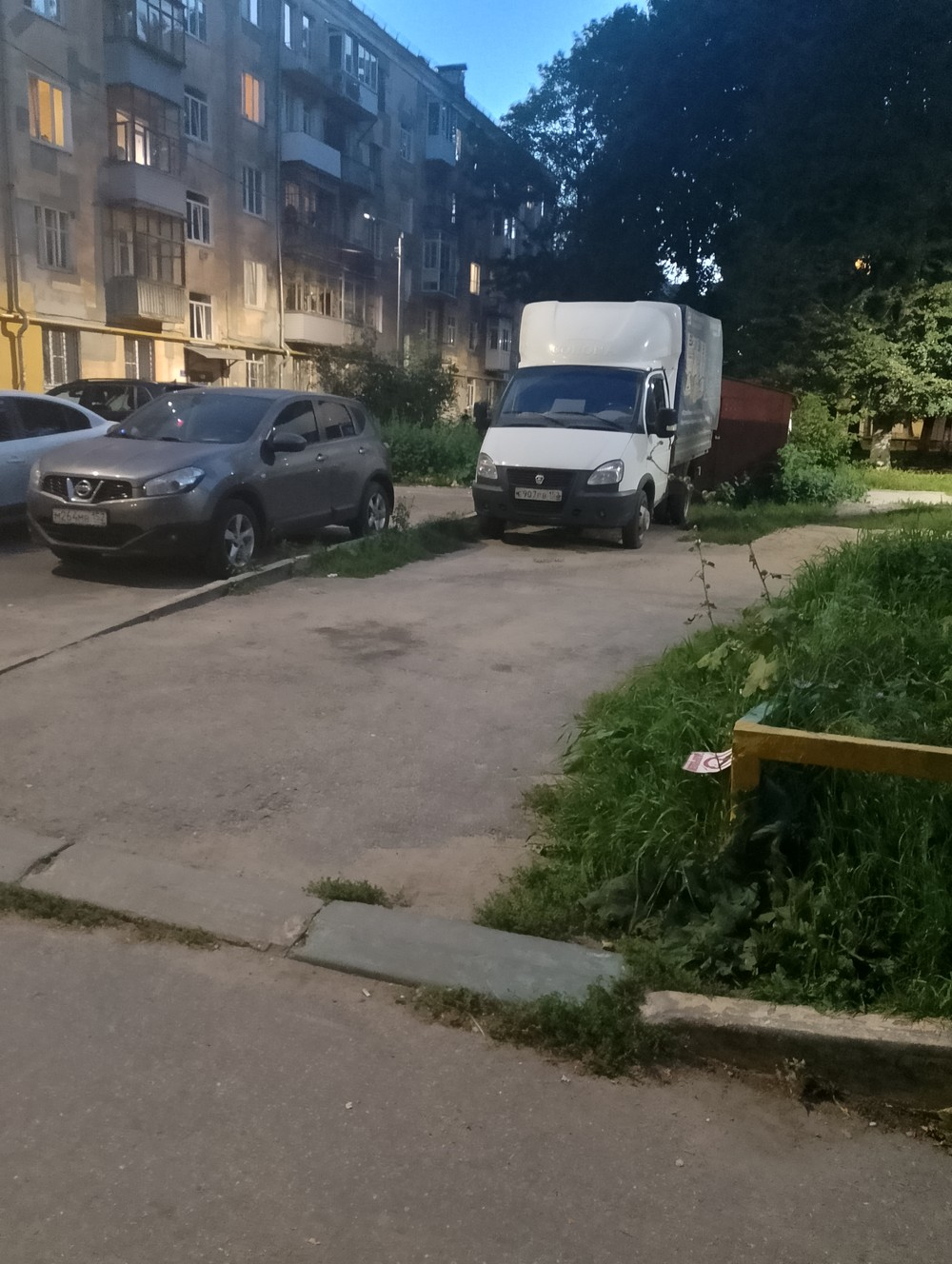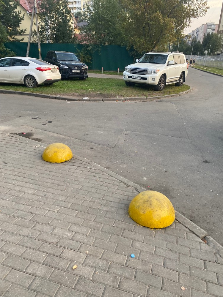 Парковка на газоне. Две машины стоят. Просьба помочь. Балашиха. Народного Ополчения д. 9. Мкр Саввино.