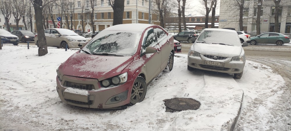 10.11.2024 г., г. Казань, ул. Фучика, д. 58. Поставил авто на зелёную зону, а потом будет колея.