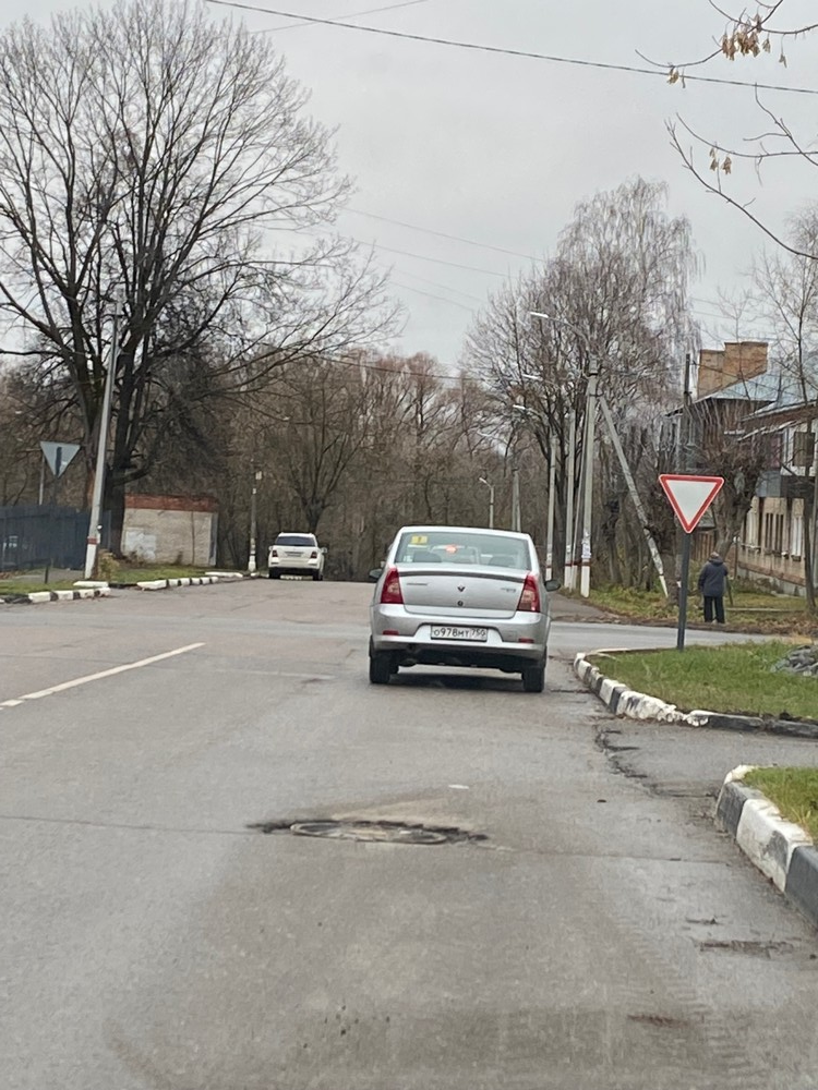Павловский Посад, Вачевская улица. Автомобиль Рено с гос. номером О978МТ750 препятствует проезду, остановившись на проезжей части возле перекрестка.