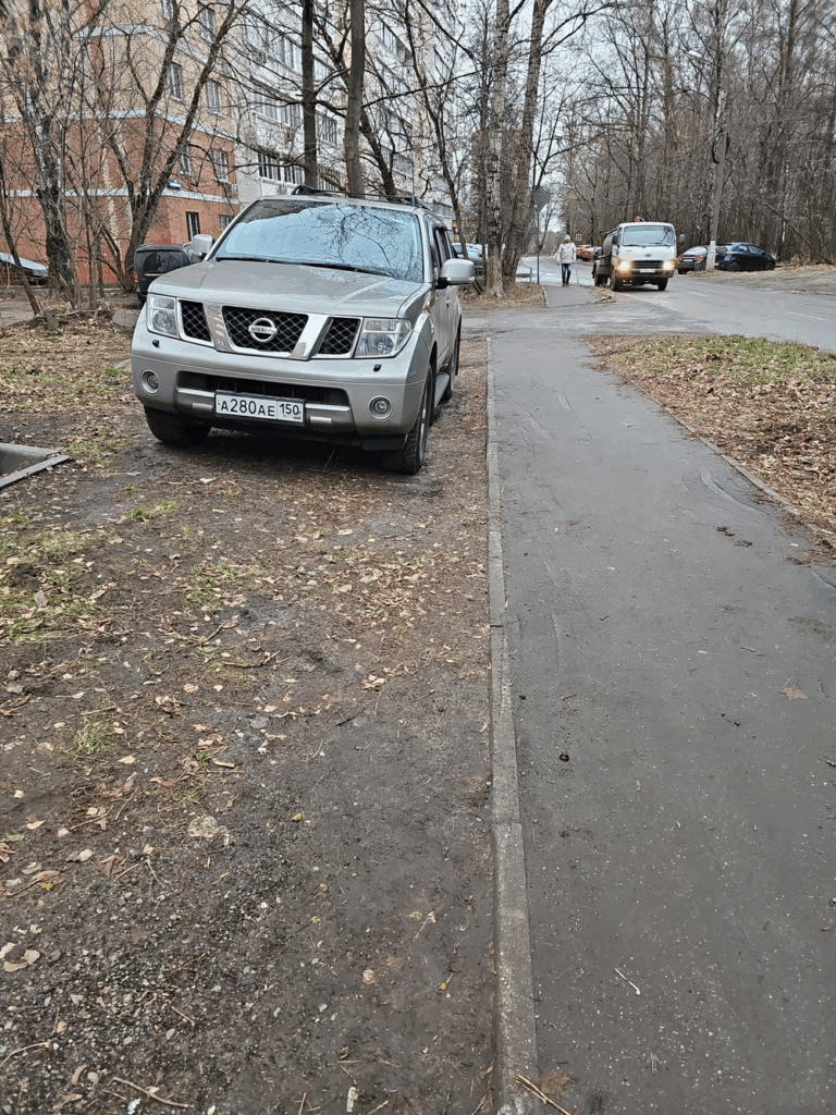 08.11.2024, время 15:18. Балашиха, ул. Евстафьева, дом 5. Автомобиль Ниссан Патфайндер с номером А280АЕ150 систематически паркуется на газоне.